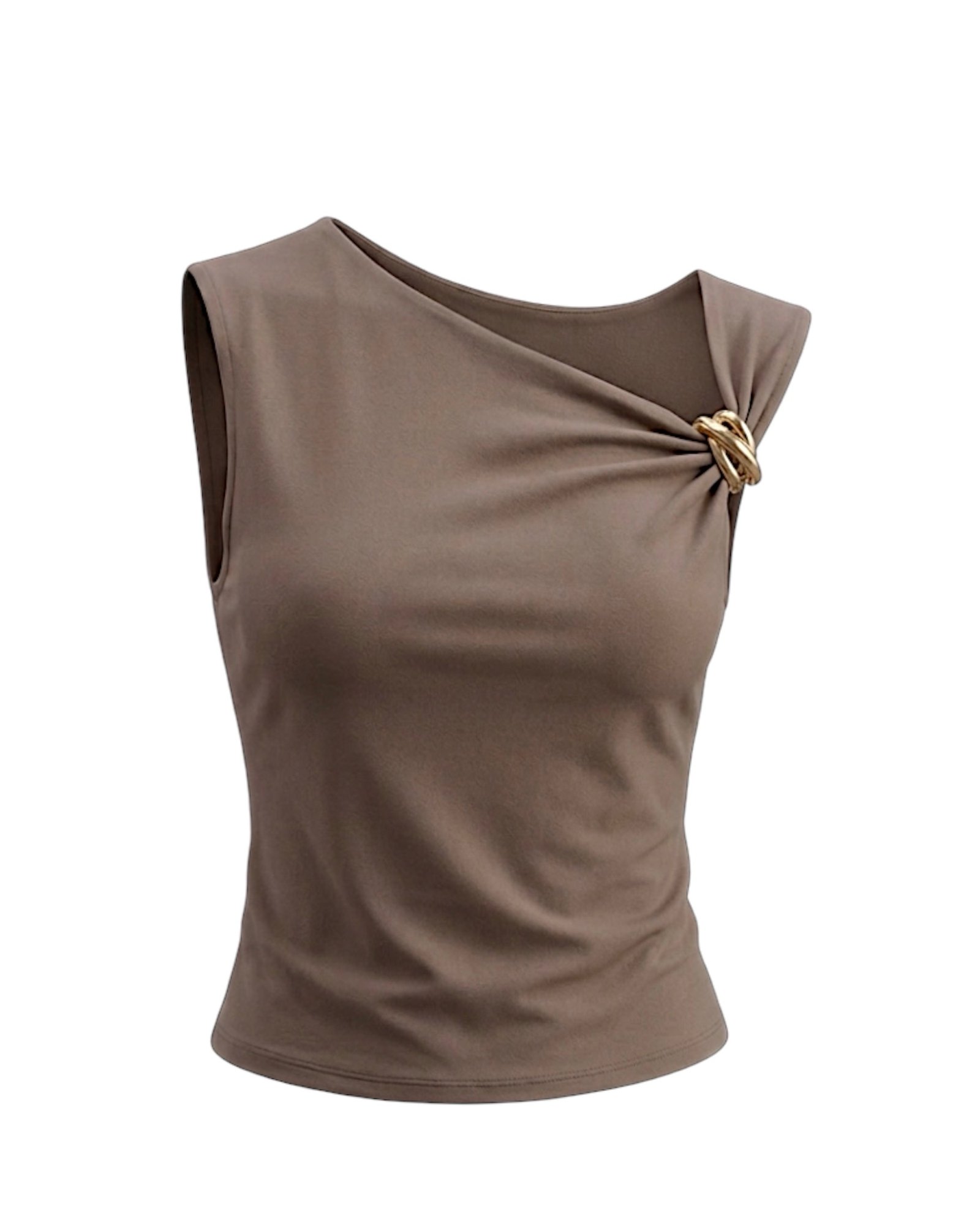 Blusa de tela licra gruesa que no transparenta y con un aplique dorado en un hombro que brinda un toque diferente y elegante a tus look.