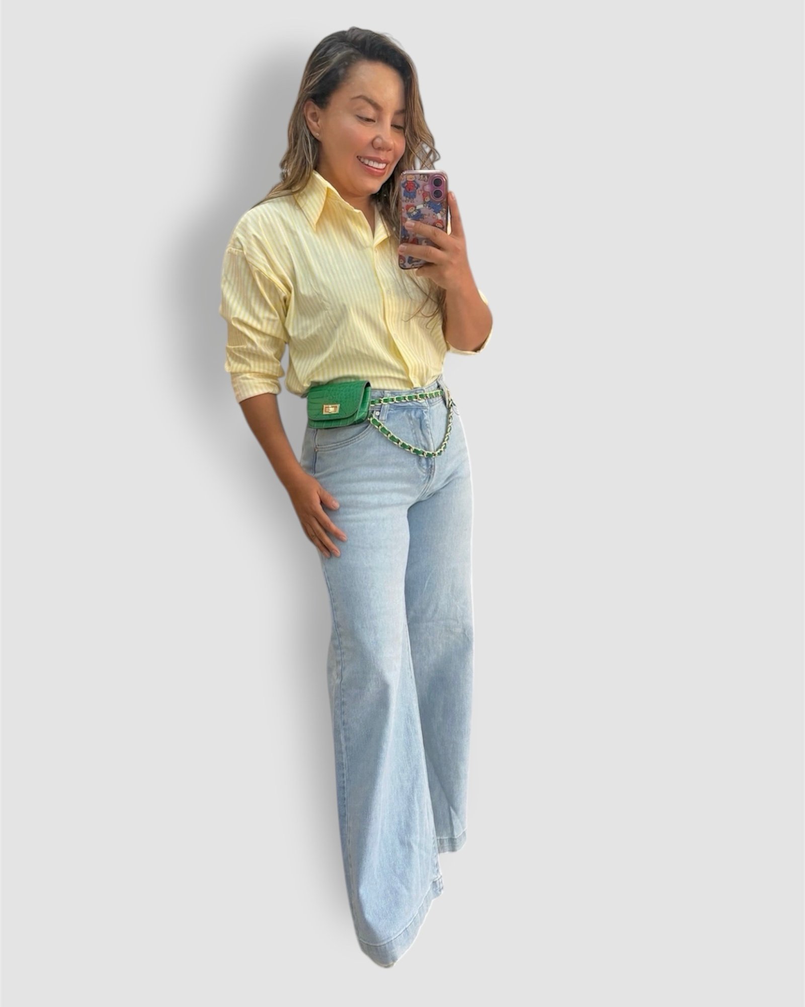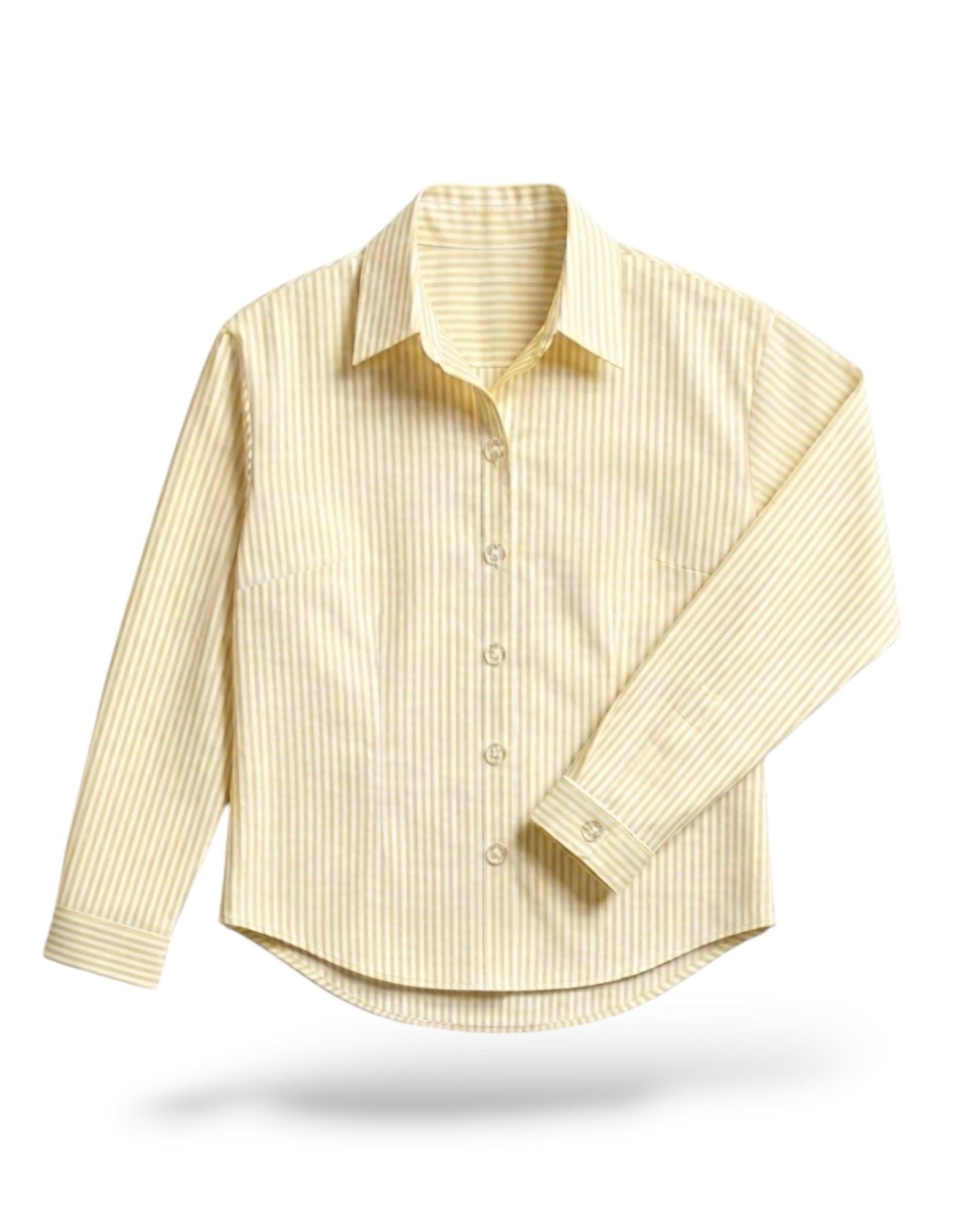 Camiseta de rayas en tonos pastel amarillo y celeste que te acompañarán en tus días laborales o casuales brindándote comodidad y elegancia.